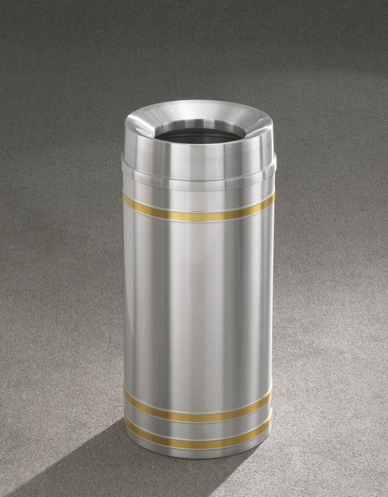 The Glaro Capri WasteMaster™ Collection is distinguished by its elegant decorative banded design, combining satin aluminum and satin brass finishes to create a refined architectural appearance.