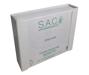 Made of durable, 22 gauge, white powder coated steel, Box format, There is no lock on this unit, simply slide the refill box into the frame. Wall or partition mountable. The dispenser measures: 6.25" L x 5.25" H x 1.5" W. For use with SB8836 sanitary napkin disposal bags, box format. For use in restrooms providing sanitary disposal of tampons and sanitary napkins.