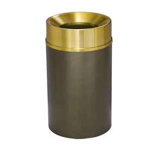 Constructed from heavy-gauge galvanized steel, the body is available in a wide array of textured or smooth, high-temperature baked powder coat finishes that maintain a fresh appearance and are easy to clean. The funnel lid is handspun from seamless heavy gauge aluminum and finished with a satin polish in various premium finishes, including brass and aluminum options. Each cover is protected by a permanent, high-temperature baked clear powder coat that resists tarnishing and eliminates the need for polishing.
