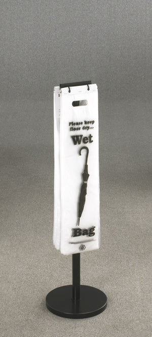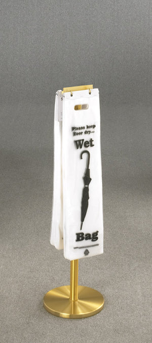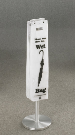 Glaro manufactures the most comprehensive selection of attractively designed, all aluminum, wet umbrella bag holders. As visitors enter indoor areas, offer the ultimate solution to managing dripping wet umbrellas. Wet floors are slippery and may result in “slip and fall” injuries. Help keep floors clean, dry, and safe! Place these Wet Umbrella Bag Holders in lobbies, entrances, parking garages, coat check areas, staircases, and near elevators or escalators too. This floor standing model is the premier product of its type in the industry. It holds 200 bags on each of 2 sides and has a stable, heavy weighted base. Umbrella bags, [UB100] & [UB1000], can hold any size umbrella and are not included.