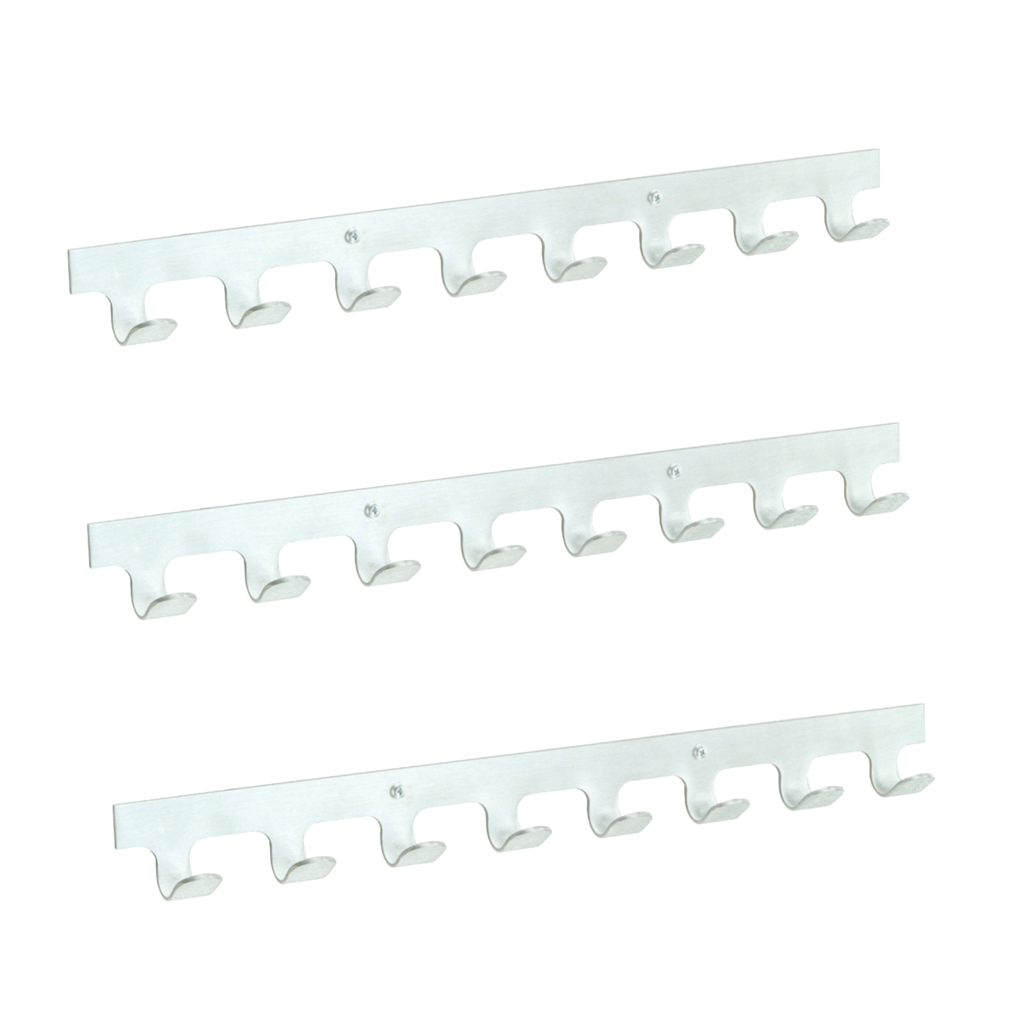 Like many Glaro products, these coat hooks are constructed of rust proof satin aluminum and will support heavy clothing or uniforms. Fashioned in a hook strip style, this model features eight all aluminum hooks that are given a fine satin polish and are then powder coated with a high temperature baked on clear coating.