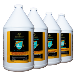 One spray application of GS75 Antimicrobial is all it takes on many indoor surfaces, carpets, fabrics, etc. to provide an “invisible” protective shield that will inhibit bacteria that cause odor, staining, and discoloration such as mold, mildew, fungi, and algae for up to 90 days. GS75 also prevents deterioration caused by these bacteria. Use on outdoor surfaces such as wood decks, furniture cushions, and umbrellas and Goldshield will protect for up to 90 days as well. GS75 is EPA approved