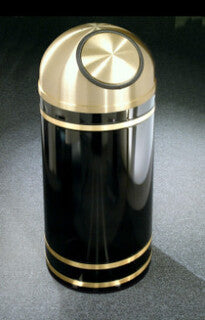 Each receptacle is constructed from heavy-gauge steel and finished with a high-temperature baked powder coat finish that resists scratches, corrosion, and everyday wear. The decorative trim and lids are precision spun and polished to create a distinctive look that enhances lobbies, offices, healthcare facilities, hotels, retail environments, and other professional spaces.