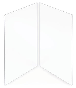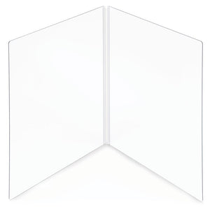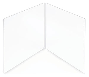 Protective Barrier - Hinged - A flexible hinge bends to create a protective barrier between seated personnel. Multiple barriers can be used to section off areas of a table. It folds flat for convenient storage. Constructed of Clear Polycarbonate Plastic & PVC hinge. Made in the USA