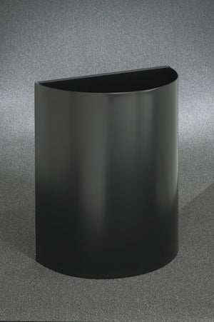 Glaro Profile Series 24" Half-Round Open-Top Trash Receptacle features satin aluminum finish and open-top design for easy waste access. Constructed from heavy-duty aluminum for commercial indoor environments.