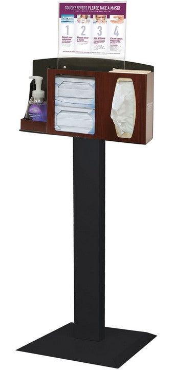 Cover Your Cough (CYC) Compliance Kits hold an assortment of personal protection equipment in a convenient and attractive dispenser. This kit holds two boxes of earloop face masks, one - two boxes of facial tissue, and one hand sanitizer bottle or hand sanitizing wipe canister (consumables not included). The sign holder is horizontal and a variety of signs can be downloaded and printed from BowmanDispensers. Proper and consistent use of the products in this dispenser reduces the chances of spreading infectious bacteria and viruses, such as those found in influenza and the common cold. CYC Kits are ideal for use in public waiting areas, offices, and lobbies.